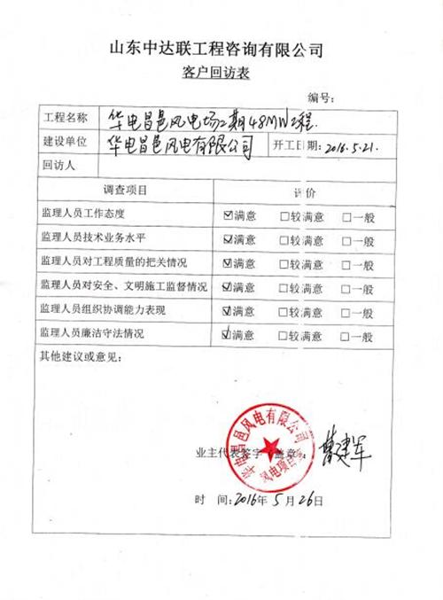 武邑風(fēng)電項(xiàng)目客戶回訪表