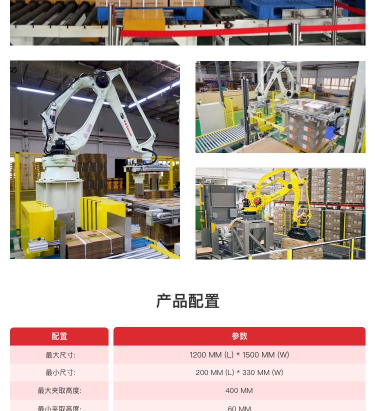 介紹:頂升抓取機(jī)構(gòu)帶有置中、疊包功能,可配合前疊包平衡碼垛效率;專業(yè)設(shè)計的紙板夾具帶有鉤,可夾取放置一層或兩層紙箱防掉落;機(jī)器人采用四軸式Kawasaki機(jī)械手臂兼顧性能與成本,將紙箱按自定義的垛型自動碼放到托盤上。 產(chǎn)品別稱:紙箱碼垛機(jī)械手、自動流水線紙箱碼垛機(jī)、紙箱碼垛、機(jī)器人紙箱碼垛、紙箱碼垛機(jī)器人